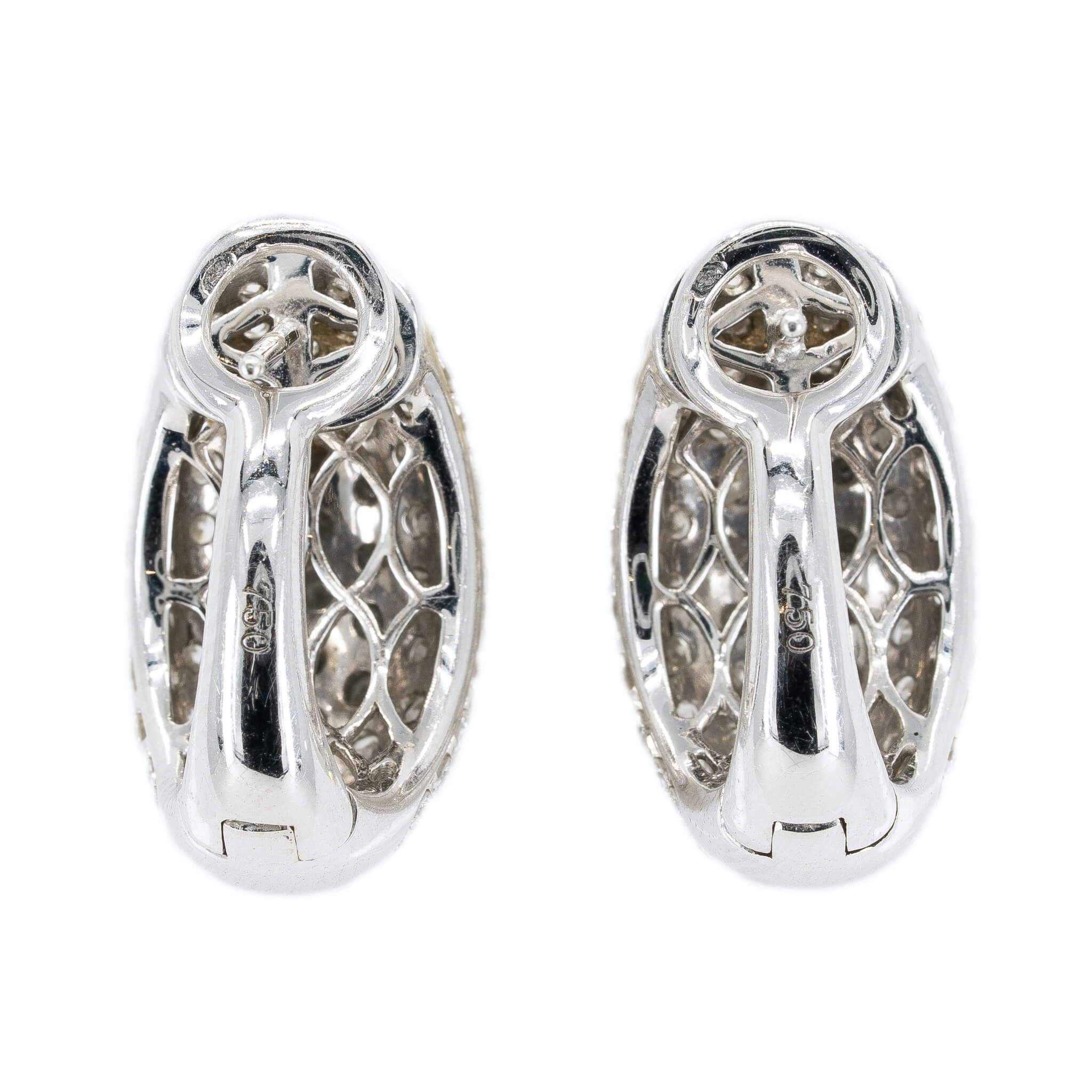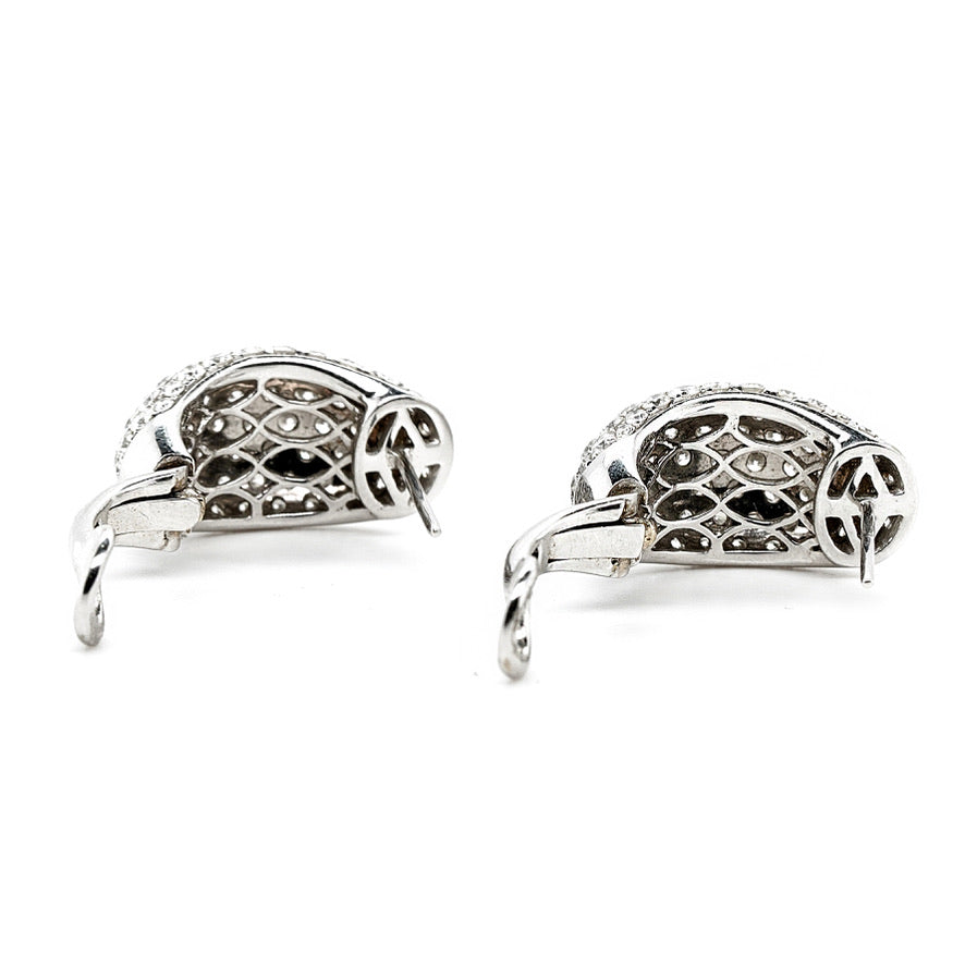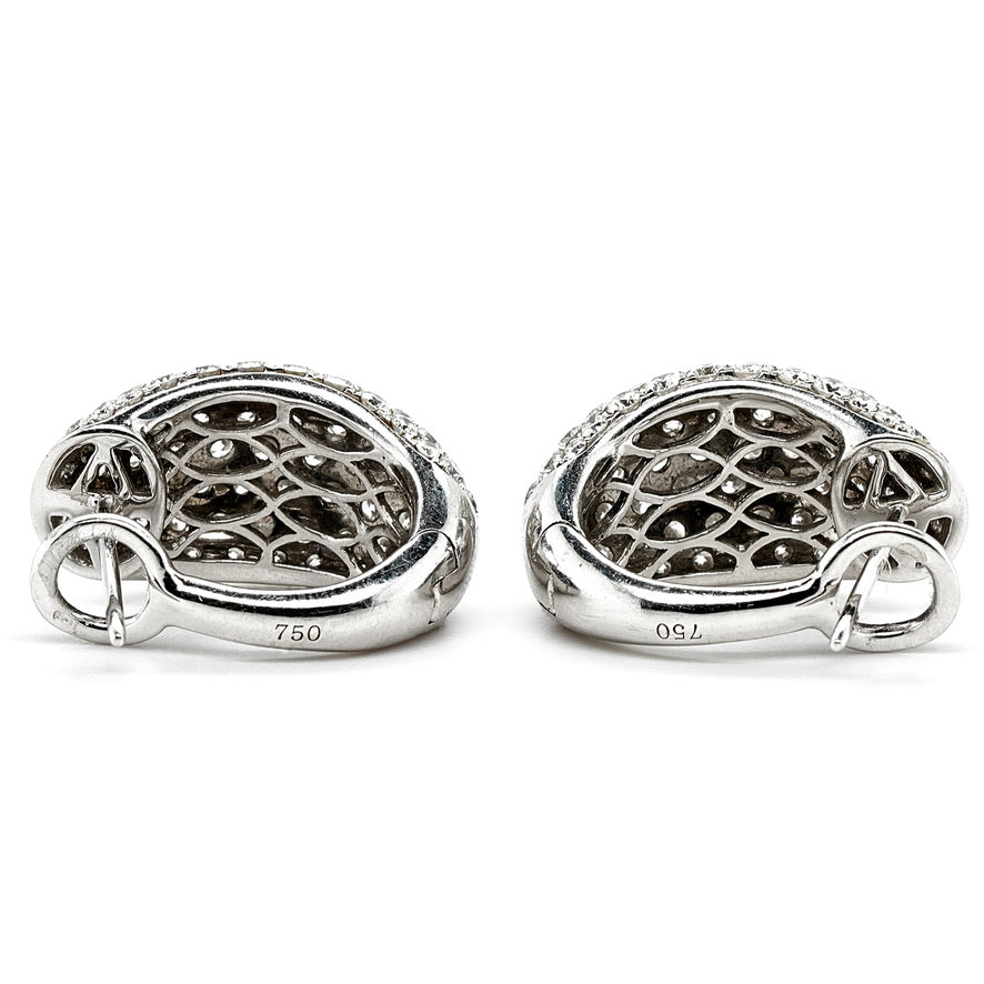 A truly stunning pair of 1960s pave set diamond bombe earrings. These beautiful earrings are set in 18ct white gold with approximately 2.10 carats of diamonds in each earring, H colour, VS1-VS2 clarity