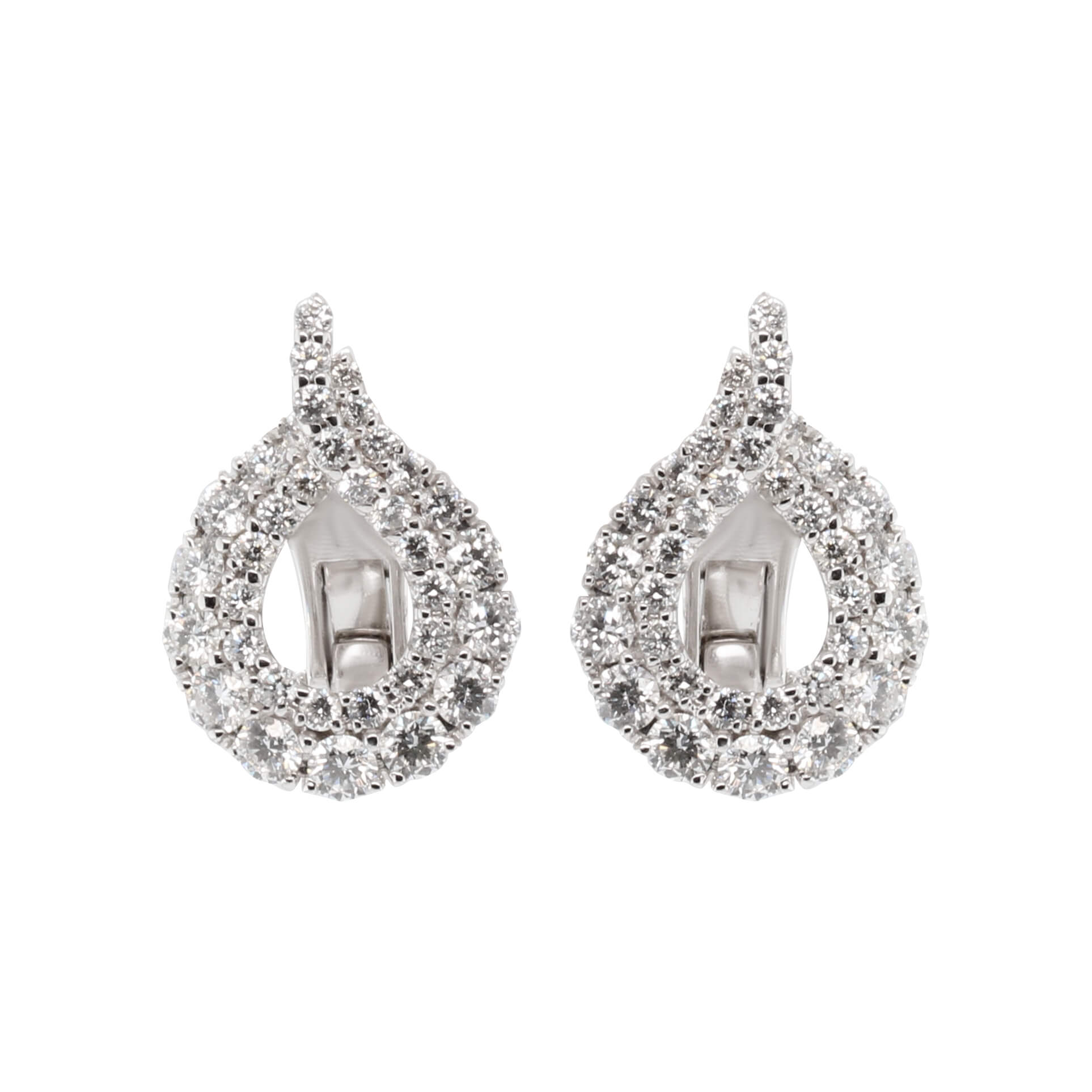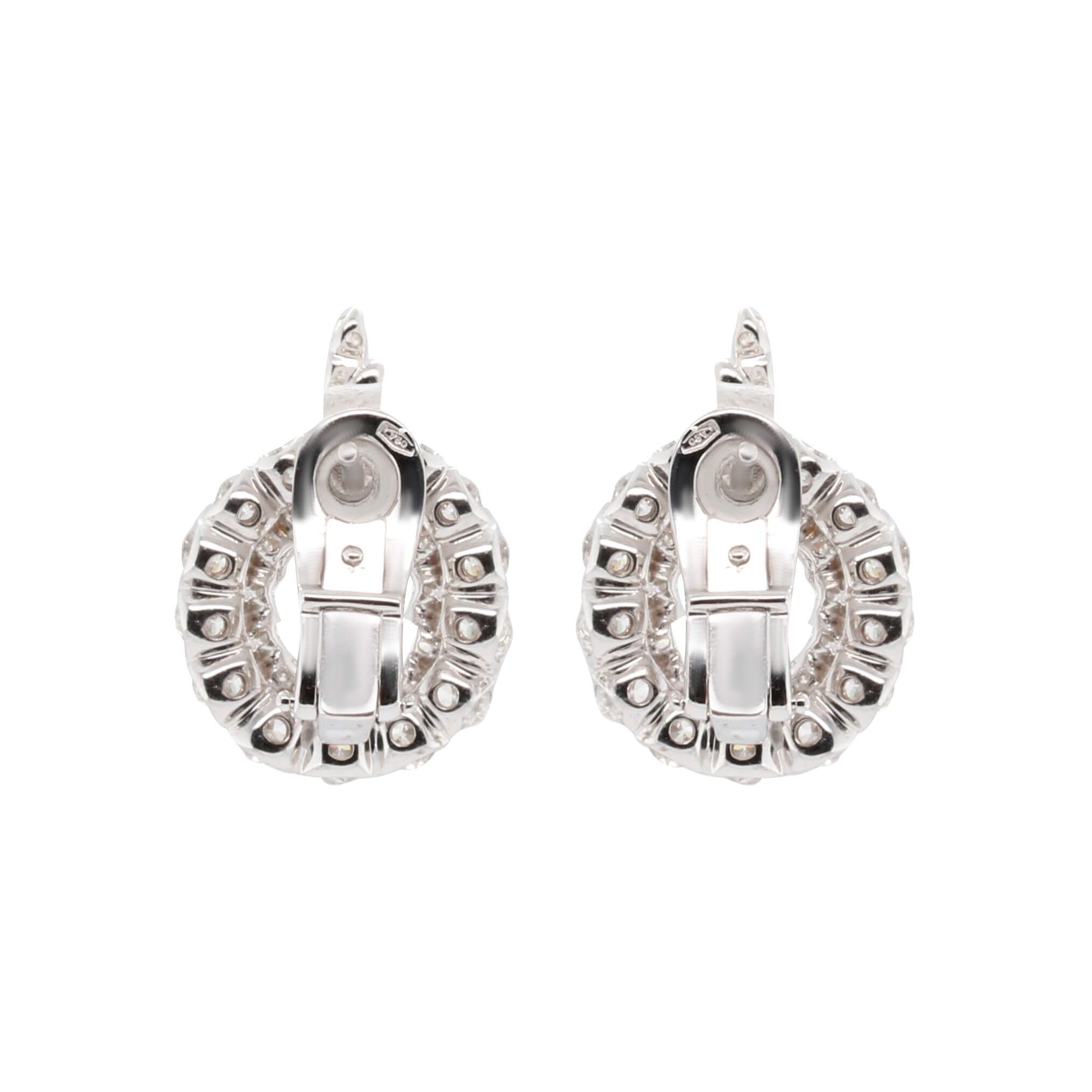 Modern 18ct white gold brilliant cut diamond earrings circa 1990, set with 2.62 carats of clean white diamonds with a maker mark that reads CLW and with 750 stamped on the back. With post and clip fittings