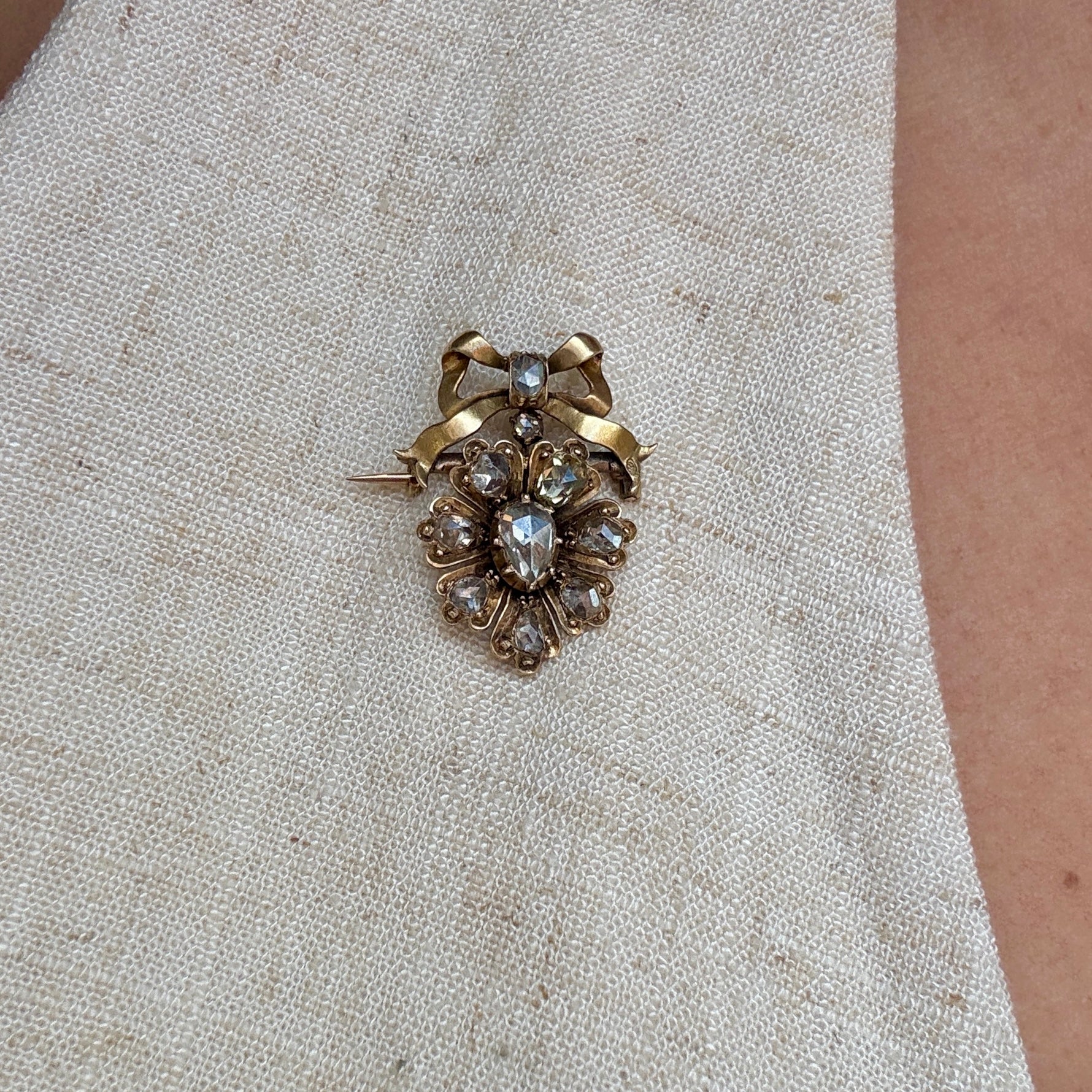 Georgian Rose Diamond Heart Bow Brooch-Charlotte Sayers Antique Jewellery