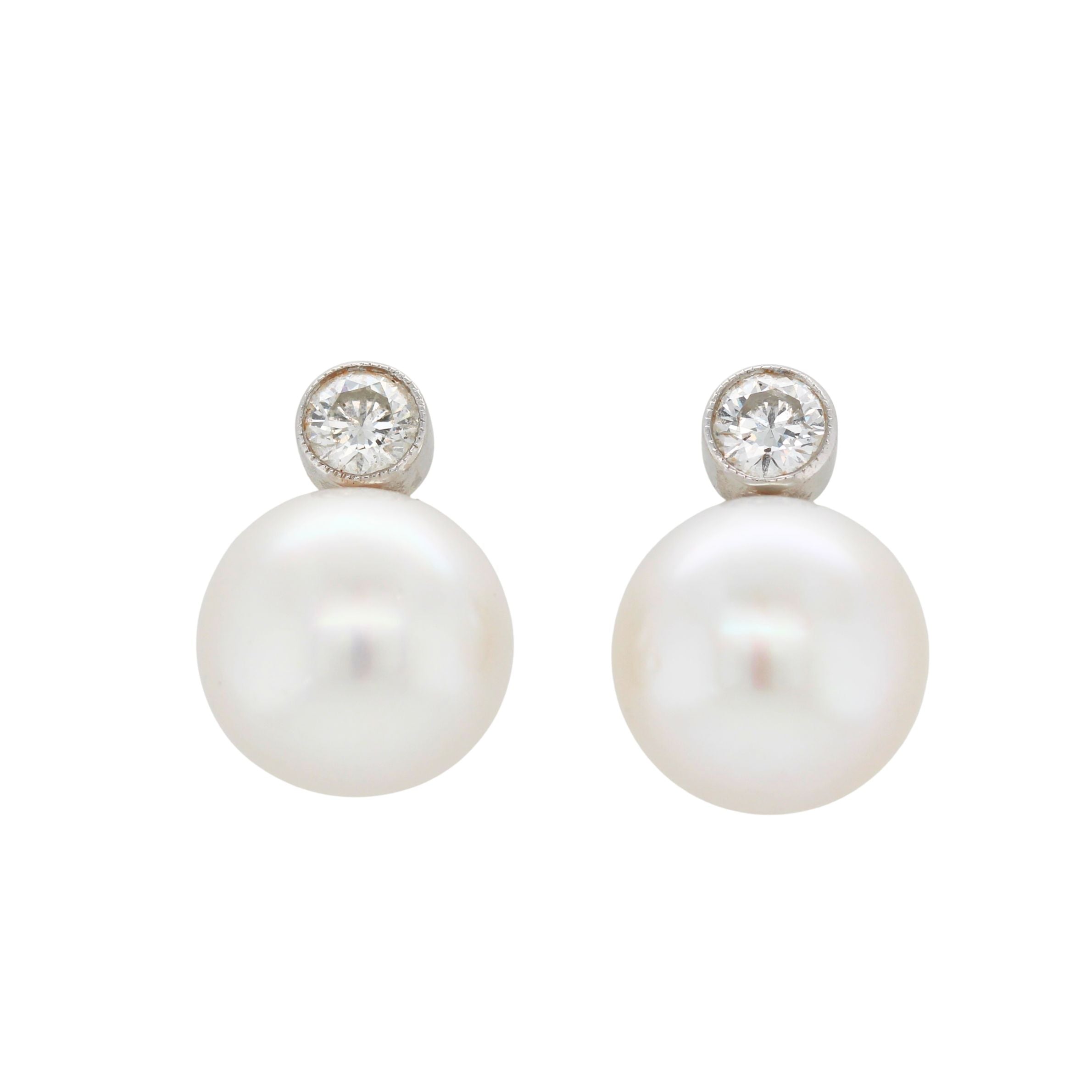 Saltwater Pearl and Diamond Earrings-Charlotte Sayers Antique Jewellery