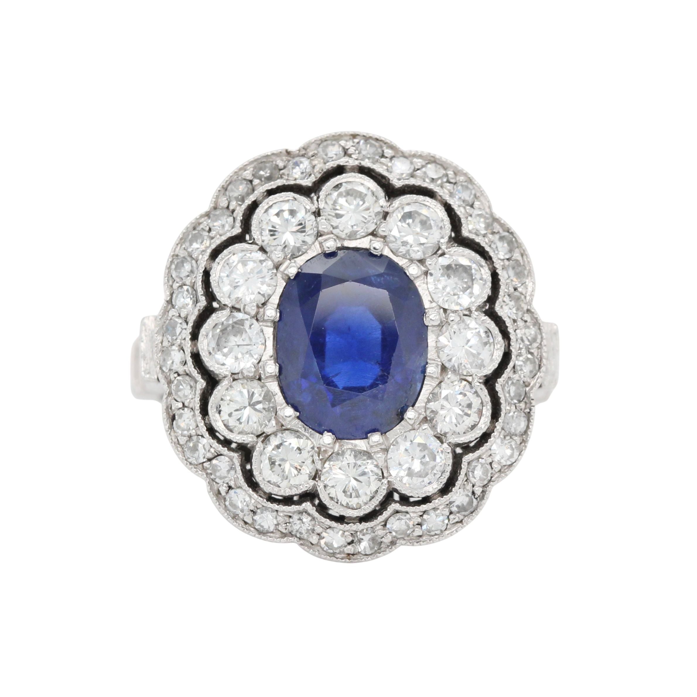 Ceylon Sapphire and Diamond Scalloped Cluster Ring