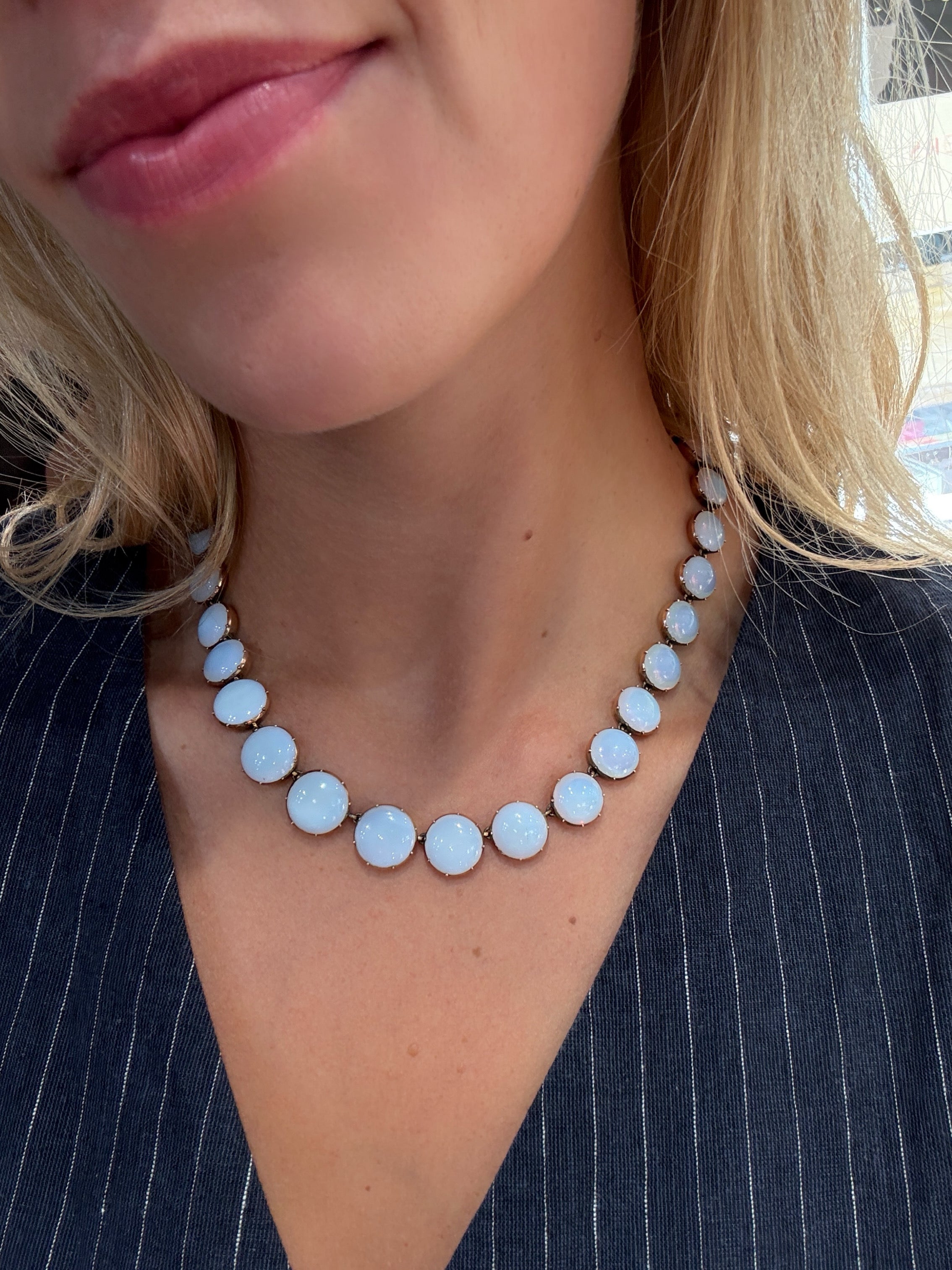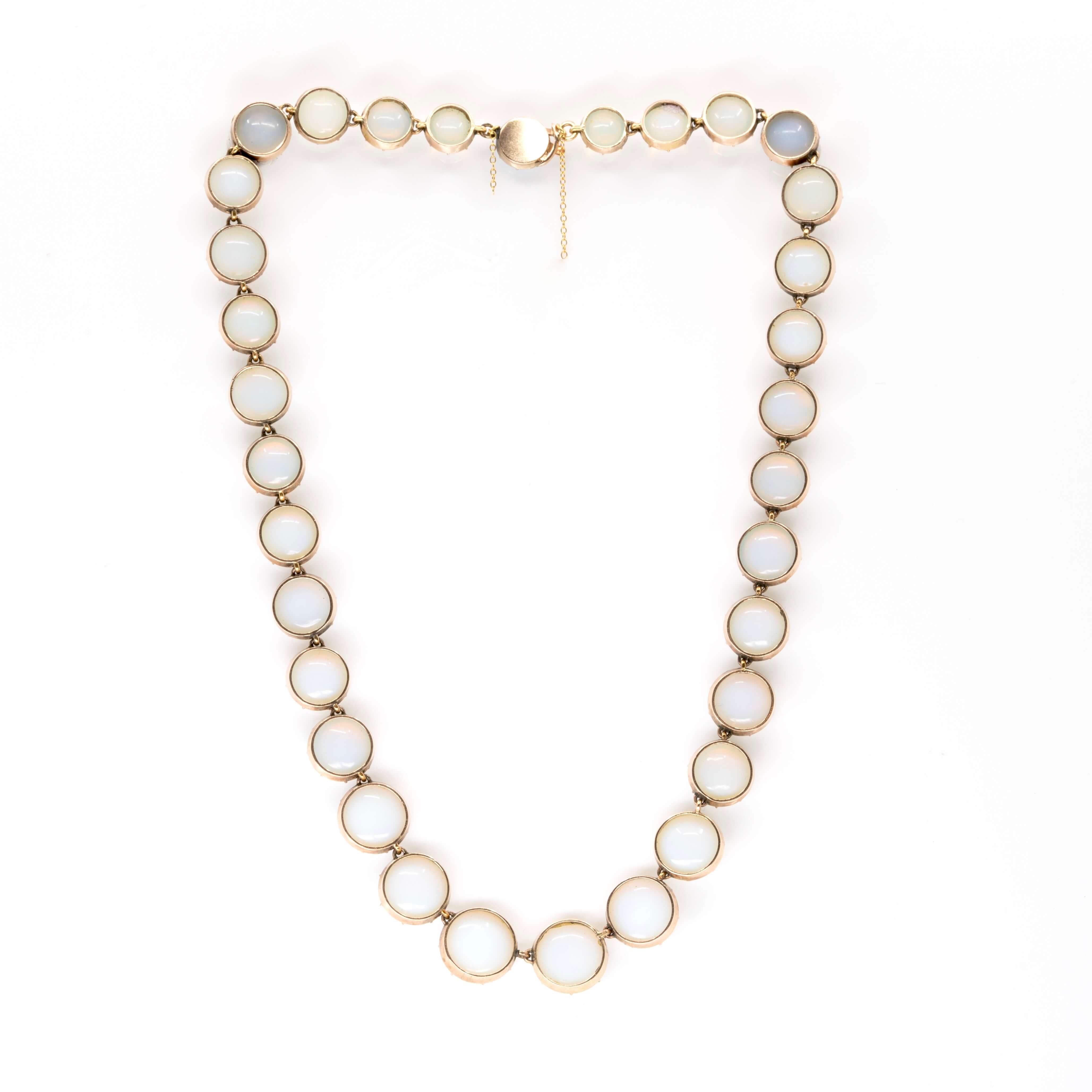 A beautiful early Victorian cabochon cut opaline paste Riviére. The necklace is set in fine 18-carat gold. This piece was made in the Victorian Era; Circa 1840