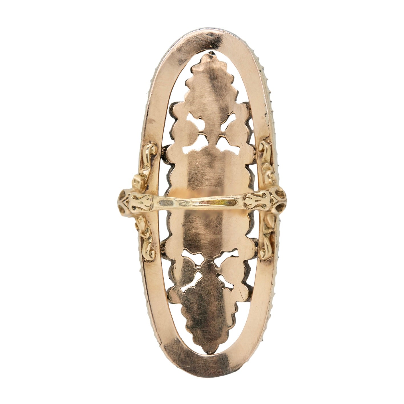 A fabulous and highly impressive Georgian rose diamond plaque ring, dating from circa 1780–1800. This exceptional piece is set in silver-topped 18ct gold and features a striking elongated plaque design that measures an impressive 5cm long by 2cm wide, beautifully curved to sit comfortably along the finger.