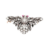 Victorian old mine cut and rose cut diamond bee brooch with charming cabuchon ruby eyes, set in silver and 18ct fine gold, with approximately 3.5 carats of diamonds. Circa 1870
