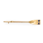 An 18ct gold Victorian oar brooch, dating from circa 1880–1900. The brooch is modelled as a rowing oar. The paddle is set with two Ceylon sapphires and a central old European-cut diamond. Fitted with a traditional pin and clasp to the reverse.