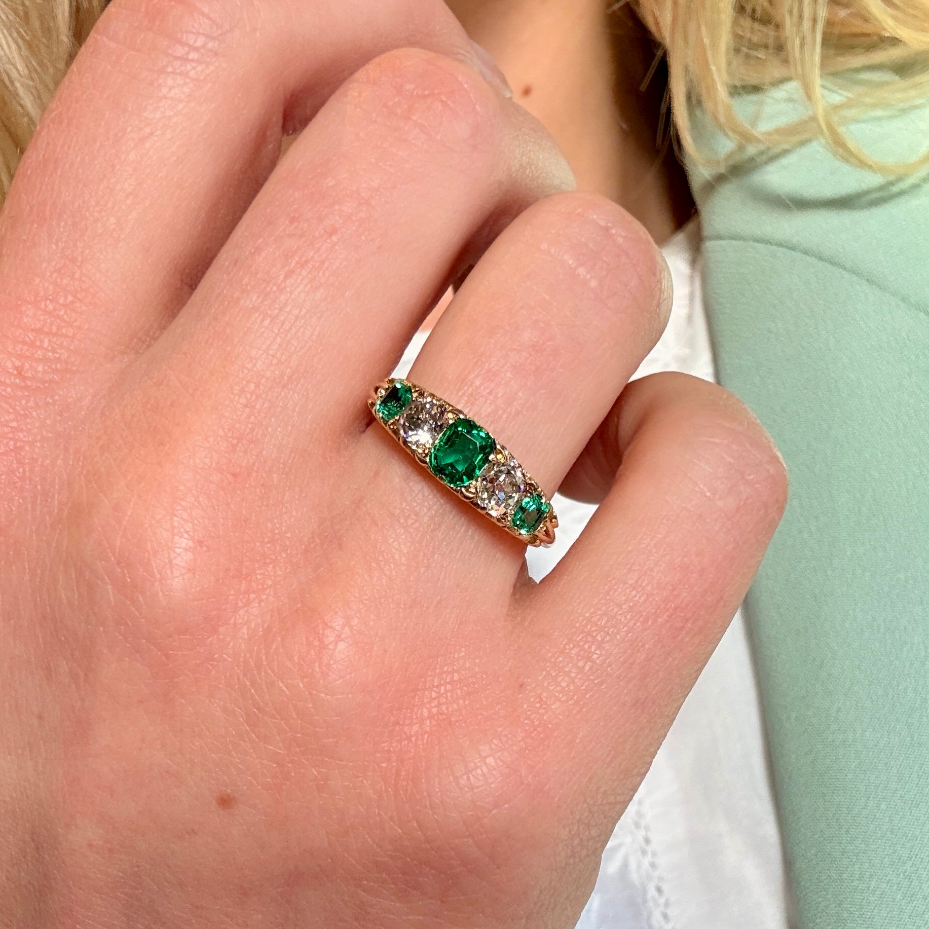Victorian Colombian Emerald and Old Cut Diamond Ring-Charlotte Sayers Antique Jewellery
