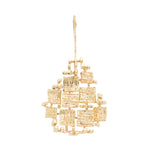 This 1970s 9ct gold pendant, bearing an import mark for London 1972 and maker’s mark E Ld, is a striking example of mid-century modern design. The pendant is composed of multiple striated square and rectangular panels, layered and arranged in an abstract, sculptural formation, interspersed with small block-like gold cubes that add texture and dimension. The richly worked, bark-like surface reflects the bold, experimental aesthetic of the period