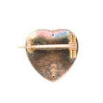 A deep purple and white enamel heart brooch by Child & Child, circa 1900, presented in its original box. The brooch is set in 18ct gold and stamped to the reverse with the maker’s mark.