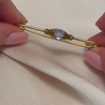 French 18ct and platinum bar brooch with a central cabuchon sapphire beside which is a row of small diamonds set in platinum.
